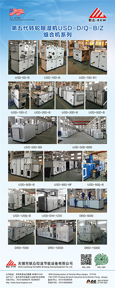 無錫市聯(lián)眾控濕節(jié)能設(shè)備有限公司成立于2004年2月,是一家長期致力于把空氣吸附分離技術(shù)應(yīng)用于空氣處理設(shè)備的科技型中外合作 企業(yè),主要研發(fā)生產(chǎn)轉(zhuǎn)輪除濕機組、熱泵除濕機組、空氣與空氣熱 能交換回收機組、蒸發(fā)冷卻空調(diào)機組、有機廢氣凈化處理機組等非 標空氣處理設(shè)備。隨著生產(chǎn)規(guī)模的不斷壯大和產(chǎn)業(yè)化的精細分工, 聯(lián)眾公司與2011年10月在江蘇省宜興市萬石鎮(zhèn)工業(yè)園茶亭路8號, 一期投資5000萬元,置地25畝、建標準工業(yè)廠房10000平方米和辦 公樓3000平方米,重新注冊成立江蘇聯(lián)眾聯(lián)勝節(jié)能設(shè)備有限公司。 企業(yè)領(lǐng)導(dǎo)層決定確立江蘇聯(lián)眾聯(lián)勝公司以研發(fā)生產(chǎn)蒸發(fā)冷卻空調(diào)機 組、有機廢氣凈化處理機組等大型節(jié)能環(huán)保空氣處理設(shè)備為主;而無錫聯(lián)眾控濕公司則在無錫繼續(xù)以研發(fā)生產(chǎn)轉(zhuǎn)輪除濕機組、熱泵除濕機組、空氣與空氣熱交器為主。在國內(nèi)暖通空調(diào)工程領(lǐng)域,聯(lián)眾控濕公司研發(fā)各類轉(zhuǎn)輪除濕機的技術(shù)能力、生產(chǎn)各類轉(zhuǎn)輪除濕機的 裝備制造工藝水平處于本行業(yè)前沿。